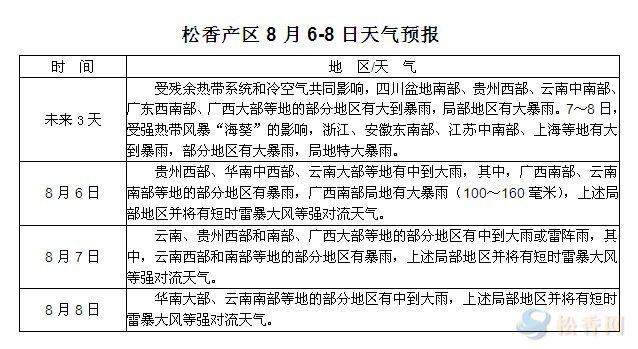 華訊松香網(wǎng)提醒:未來(lái)三天受殘余熱帶系統(tǒng)和冷空氣共同影響,兩廣、云貴等地局部有大到暴雨,松脂采收工作暫難恢復(fù)。另熱帶風(fēng)暴“海葵”將登陸東部沿海,江浙皖滬等地受影響。本周各主產(chǎn)區(qū)仍多陣雨天氣為主,且不乏短時(shí)暴雨的等天氣,松脂量方面將難有較大改善,對(duì)于部分前期接有8月份訂單的工廠有一定影響,為保證原料供應(yīng),部分地區(qū)工廠或適當(dāng)調(diào)整松脂收購(gòu)價(jià)格。