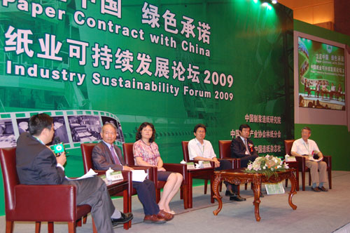 在新中國(guó)成立60年之際,中國(guó)紙業(yè)也經(jīng)歷了60載春秋的成長(zhǎng)與發(fā)展。從建國(guó)初期的年產(chǎn)不足百萬(wàn)噸一躍而成2008年的八千萬(wàn)噸,從以前依賴進(jìn)口到現(xiàn)在的世界第二大造紙生產(chǎn)國(guó),中國(guó)造紙行業(yè)經(jīng)歷了從無(wú)到有、點(diǎn)滴積累到奮發(fā)圖強(qiáng)的光榮歷程。然而,在當(dāng)前世界經(jīng)濟(jì)形勢(shì)持續(xù)低迷、自然資源緊缺、環(huán)境污染的多重壓力下,中國(guó)紙業(yè)如何能突出重圍走出一條有中國(guó)特色的可持續(xù)發(fā)展之路,成為了本次論壇交流和討論的焦點(diǎn)。另外,論壇以中國(guó)紙業(yè)可持續(xù)發(fā)展為切入點(diǎn),通過(guò)全體大會(huì)和對(duì)話的形式,分別從宏觀經(jīng)濟(jì)、行業(yè)政策發(fā)展及環(huán)境保護(hù)等角度就造紙業(yè)是否能夠做到環(huán)境友好和人工林是林紙循環(huán)的關(guān)鍵環(huán)節(jié)等話題進(jìn)行開放性討論。