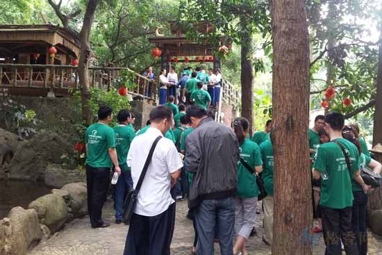 4月19日,南寧的天氣格外的好,在南寧參加2013松香產(chǎn)業(yè)高峰論壇的代表一行近五十人,一路歡聲笑語向壯民族的文化發(fā)祥地之一的廣西武鳴縣進(jìn)發(fā)。上午的目的地是伊嶺巖風(fēng)景區(qū),該景區(qū)依托伊嶺巖獨(dú)特的喀斯特溶洞及秀麗的山水風(fēng)光,同時(shí)將壯族的民族風(fēng)情融入到美麗的自然景觀當(dāng)中,代表們一邊欣賞著自然景觀,在民俗長廊真實(shí)的感受了一把壯家傳統(tǒng)的迎客禮儀,從嗩吶迎客、跳竹杠舞、對(duì)唱山歌、喝迎客酒、品壯家特色小吃等等,領(lǐng)略到了絢麗多姿的壯族文化。